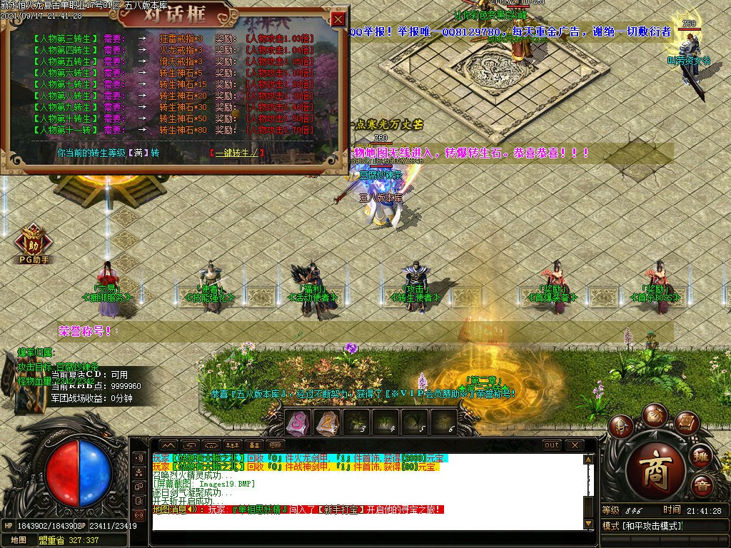领取群礼包。然后进入新手战场自行发挥。地图非常大,发展需要时间,首先把自己转生到5转。 5转之后才是真正的开始。5转有6张地图,每层都有秘境。里面爆各种材料,转生石爆率极高。转生石价格合理。没事廉个烟钱是没问题的!