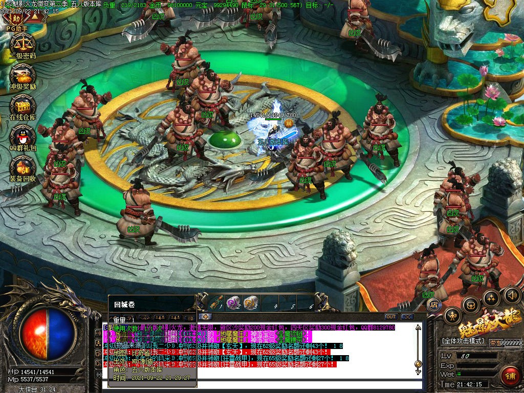 【特色功能】前期建议玩法师或者道士,道士前期辅助神兽,超猛,单挑一切BOSS