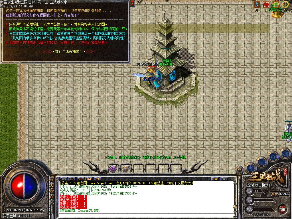 【公告】本服为抢杀BOSS版本,都会爆出大额经验卷,击杀各地图内BOSS后可立刻前往镇妖神殿寻找镜像!