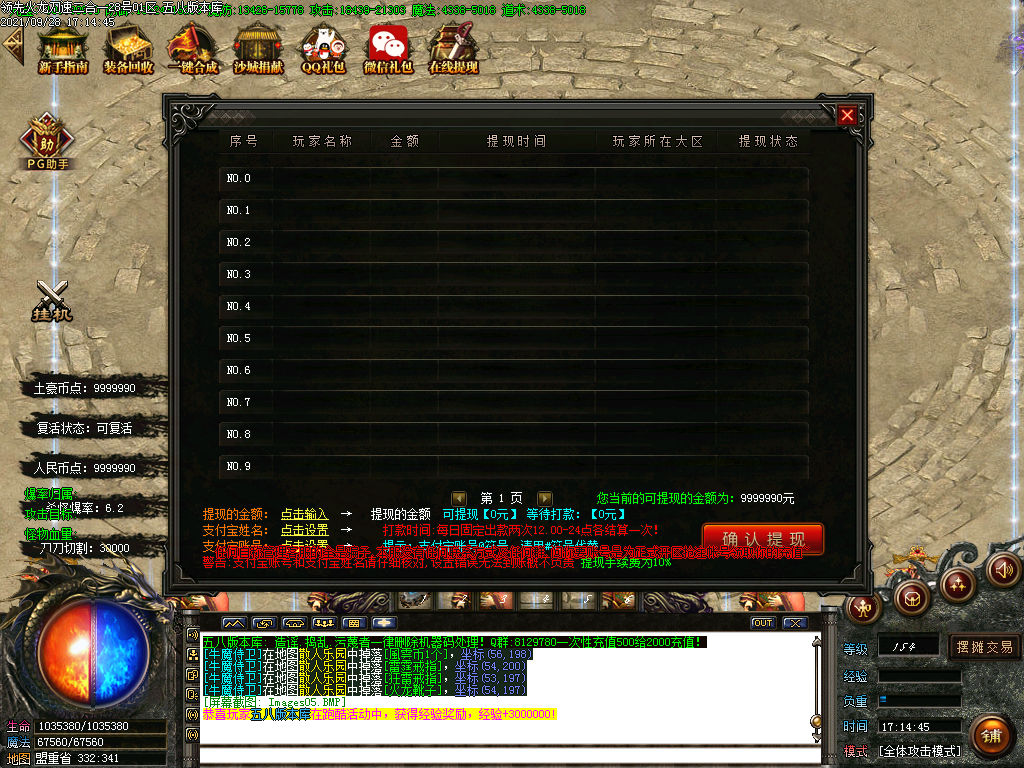 版本介绍:【刀速二合一】进服享自动回收.0秒全屏拾取.1秒自动合成.见怪就是8道光.小怪出一切。充值可爆━散人好混