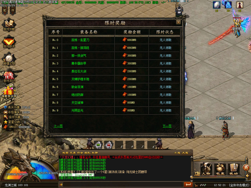 灭世幻魂:开区第三天举行集体攻沙.首次攻沙奖励捐献金额+元宝奖励.老区神秘奖励.具体详情敬请等待