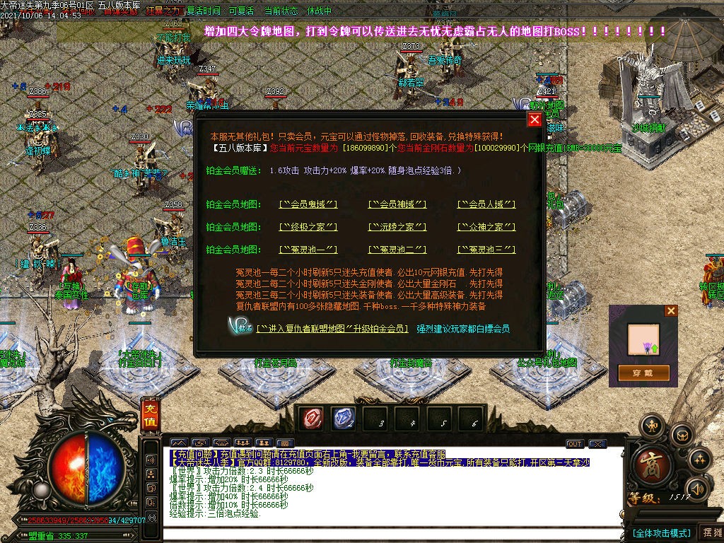 【回收装备】爆率全开,测试充值元宝多送20%,米点无赠送