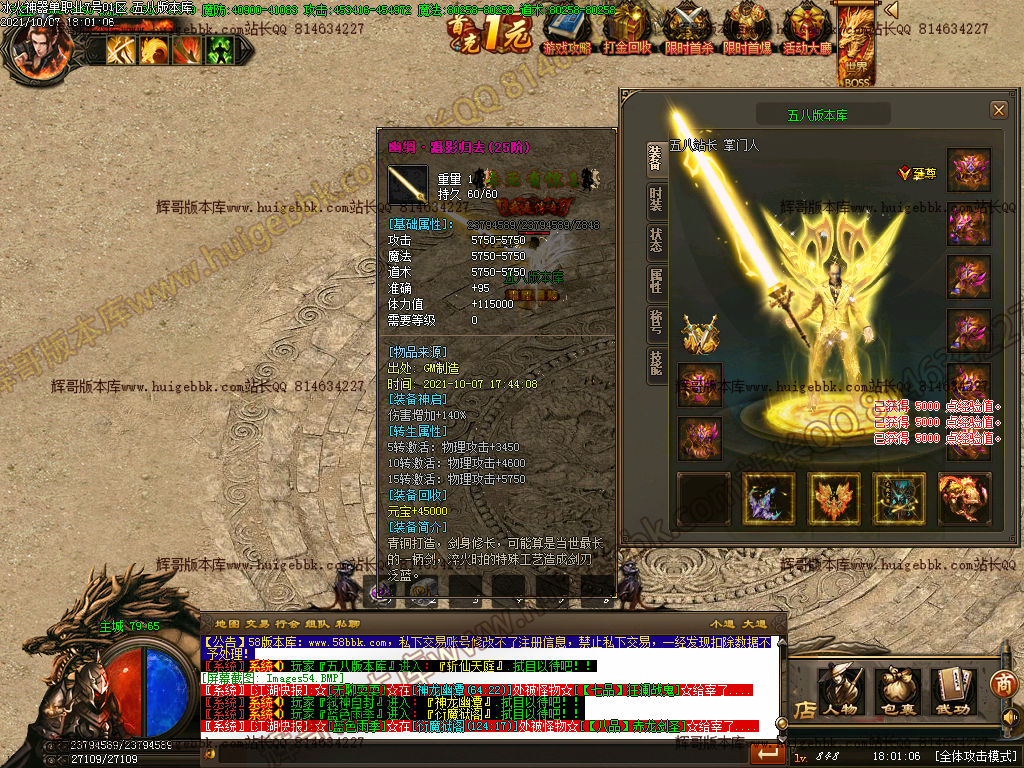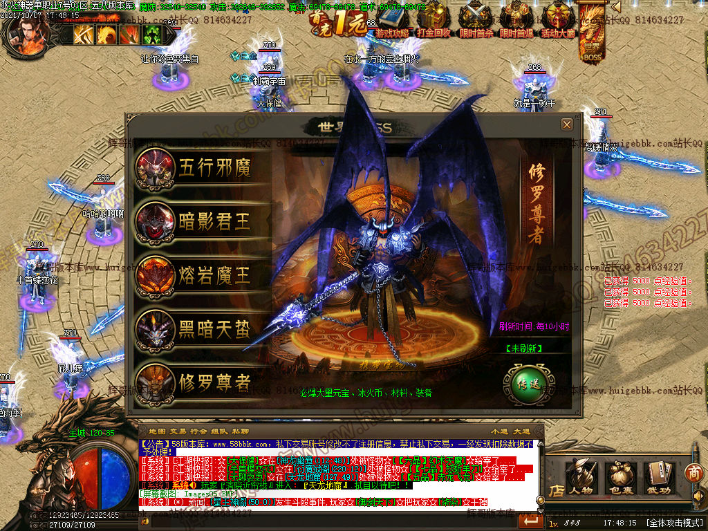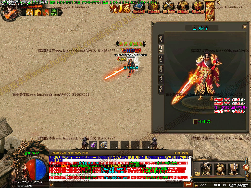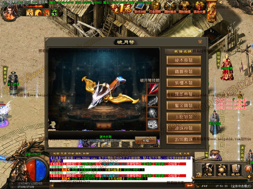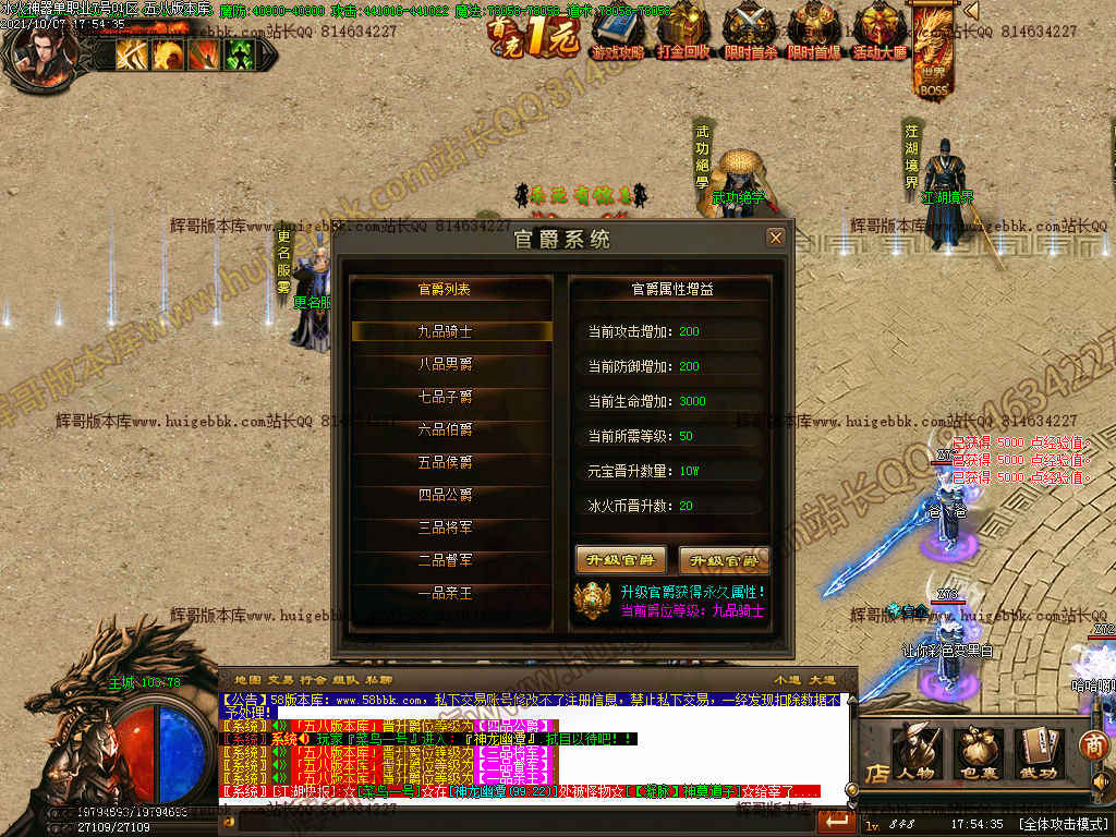 (8)开始循序渐进,攻击、血量都有提升的时候就要开始打高级的怪了,等攻击达到3W左右的时侯,去皓月站台主要爆15阶以上武器和衣服,这个要看人品。