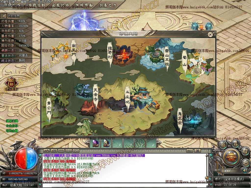 武侠大陆-修真大陆-修真世界-南天门-永生界-混乱通道(221 133)-远古祖地-混乱空间-地狱冥界-众神之地-罪与罚