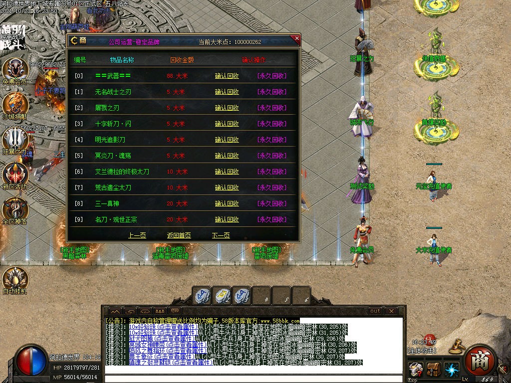 2.土城满切割=315万元宝[自动捡取.自动挂机]///元宝1米=20000