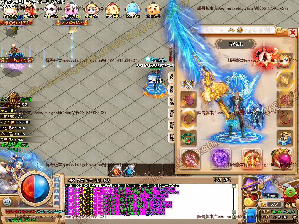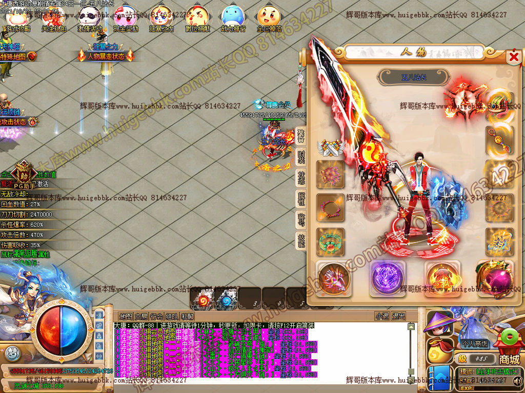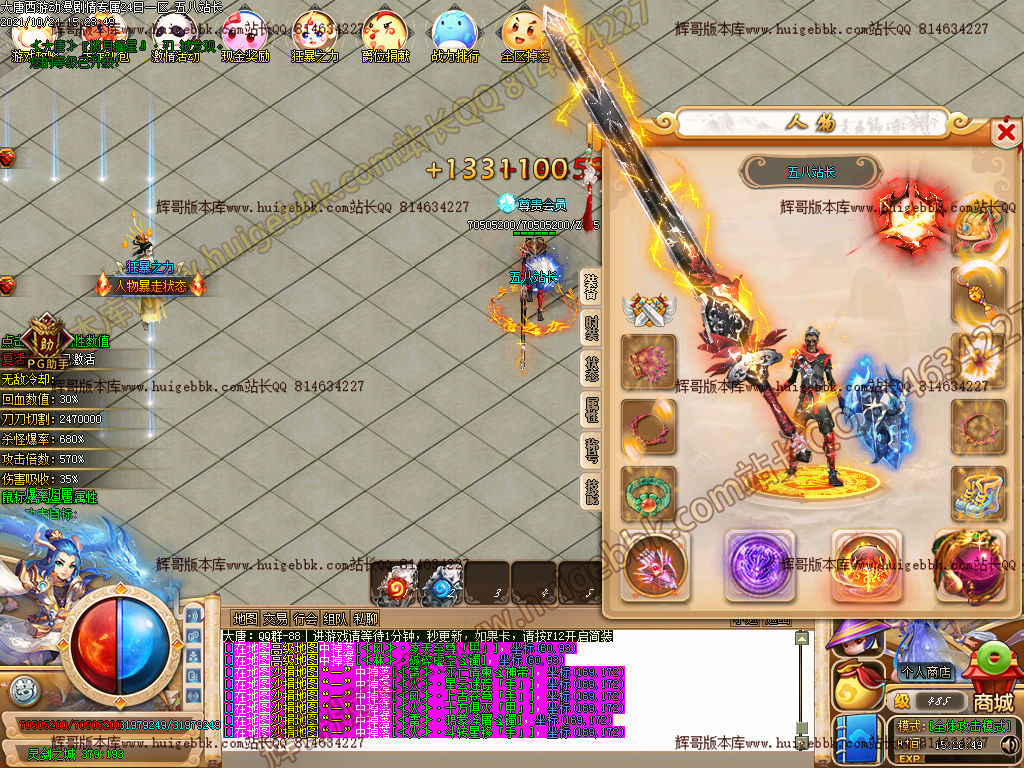 ①:本服领QQ群礼包可获得永久冰冻、刀刀切割、逐日和开天斩等,真正做到不花钱上线就能撸死所有BOSS…