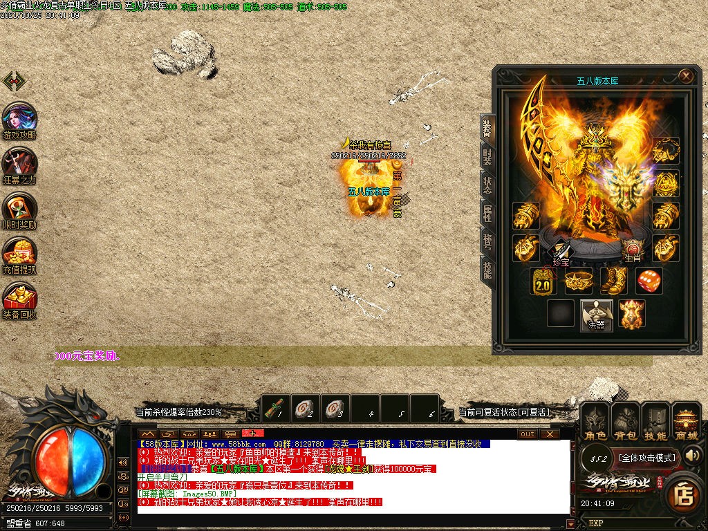 散人玩家把捐献狂暴弄完然后快速转身,把散人爆率点上5万元宝。快速下新世界大陆地图,嗷嗷叫。