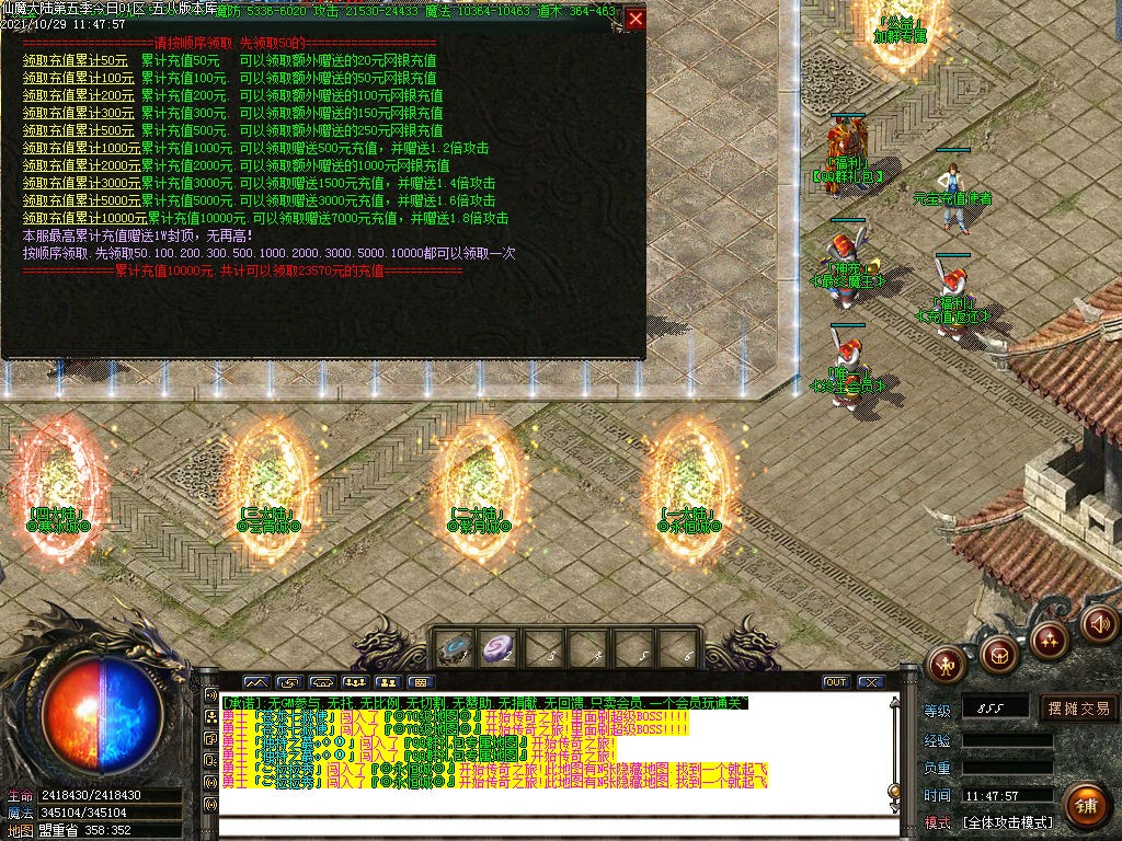 上线就送魔法盾,施毒术,召唤灵宠,加血宝石,起步就打B0SS,超级好发育