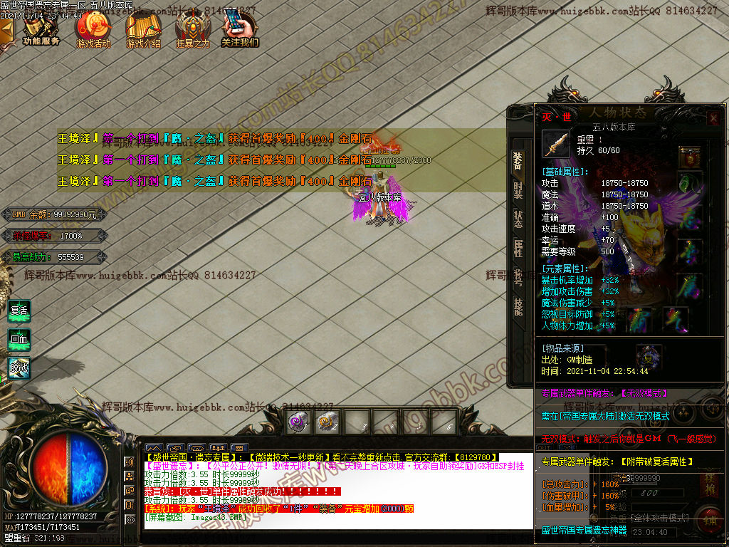 百倍爆率 回馈可打 装备靠打 无合成
