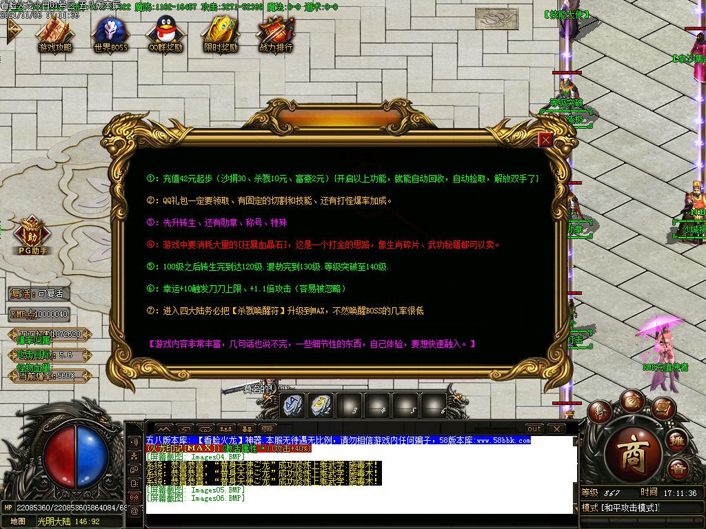 :QQ礼包一定要领取﹑有固定的切害割和技能、还有打怪爆率加成。