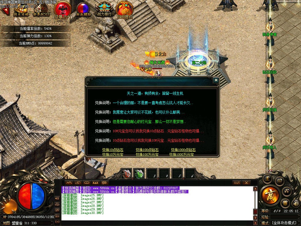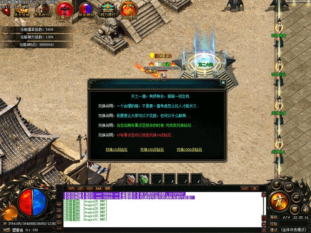 【游戏介绍】 第二天18点合区!晚上20.00开启争夺沙巴克,奖励红包,188-1888米,等你来拿!!!