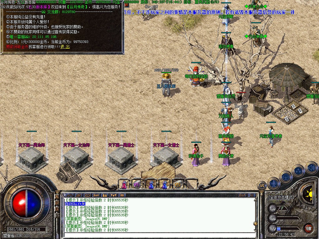 ⑧.【攻沙奖励】:新区第三天进行统一攻沙,奖励为2亿金币,本服无米拿沙奖励政策!