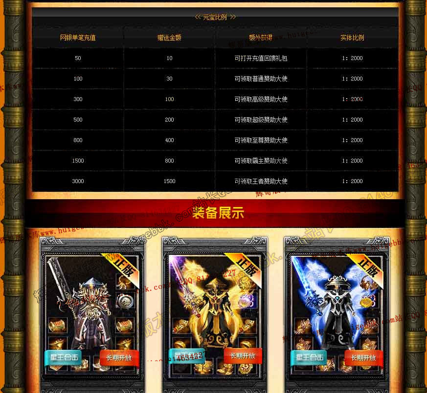 元宝比例:1=3000元宝 点卡赠送80%:即1:5400 网银赠送100%:即1:6000