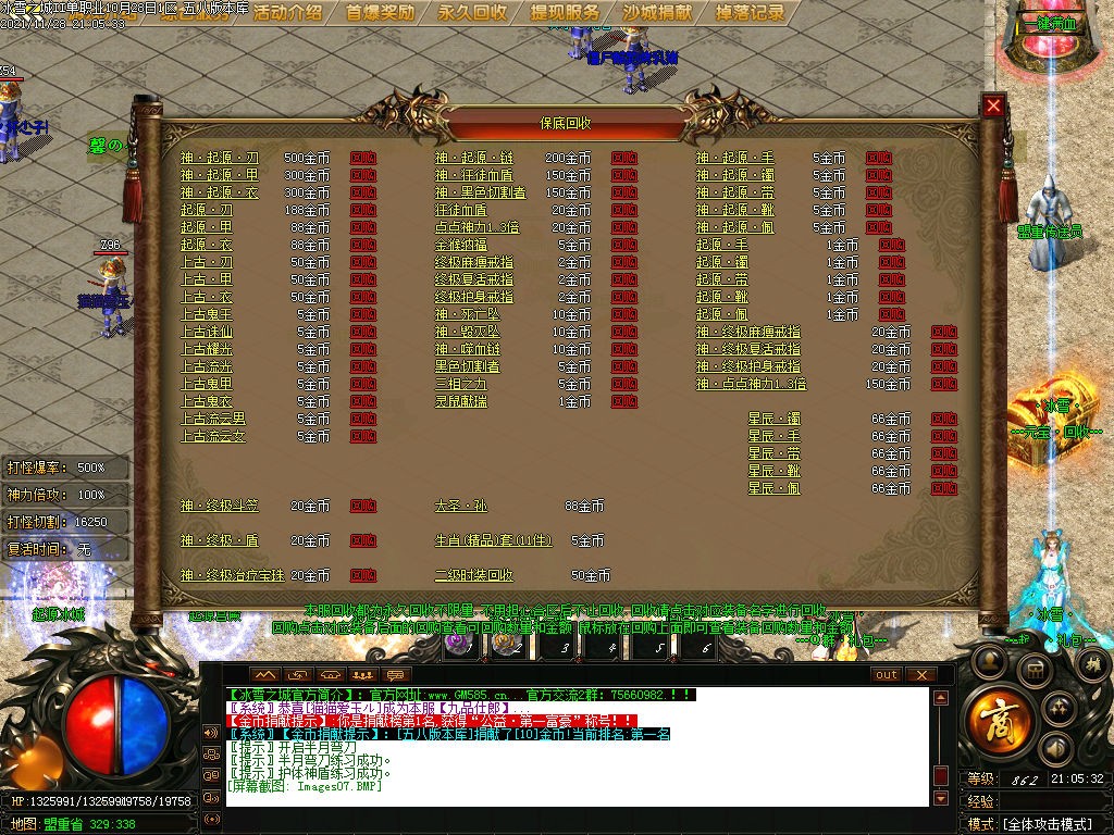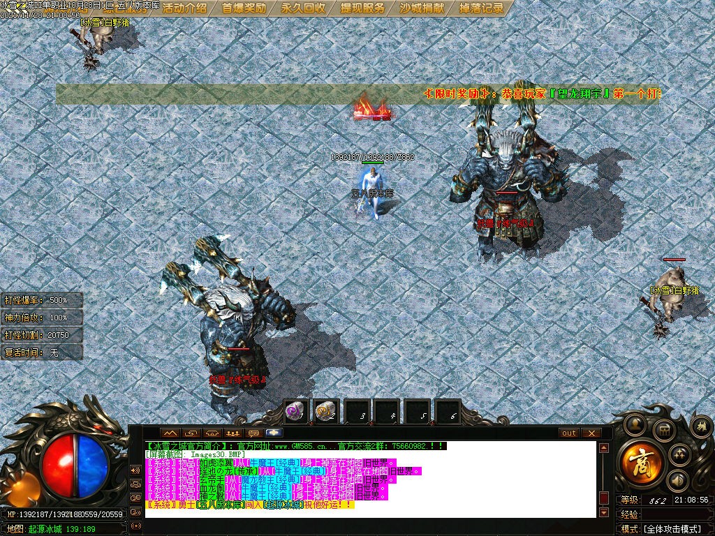 【介绍】:本服所有怪物都可爆出终极装备.元宝保值换金币.直接吃肉.保值玩家的利益.是我们一直坚持的!