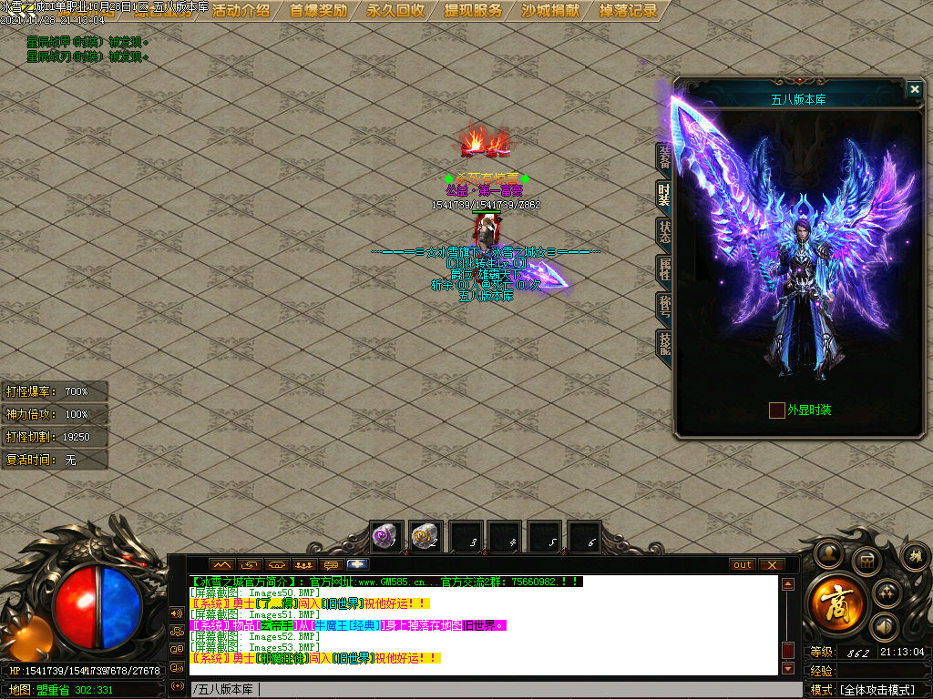 【开区介绍】:每日5个新区.11:00 14:00 17:00 20:00 23:00 等待区会提前半小时开放 送出大量元宝.元宝换金币吃肉!
