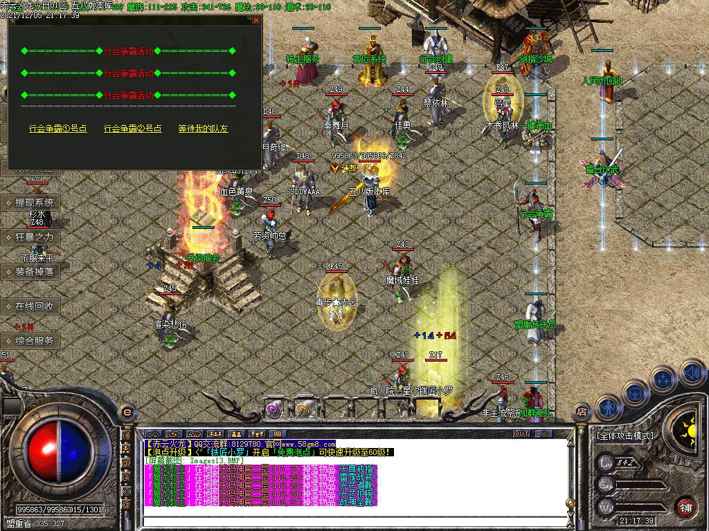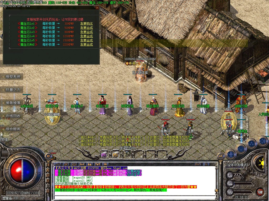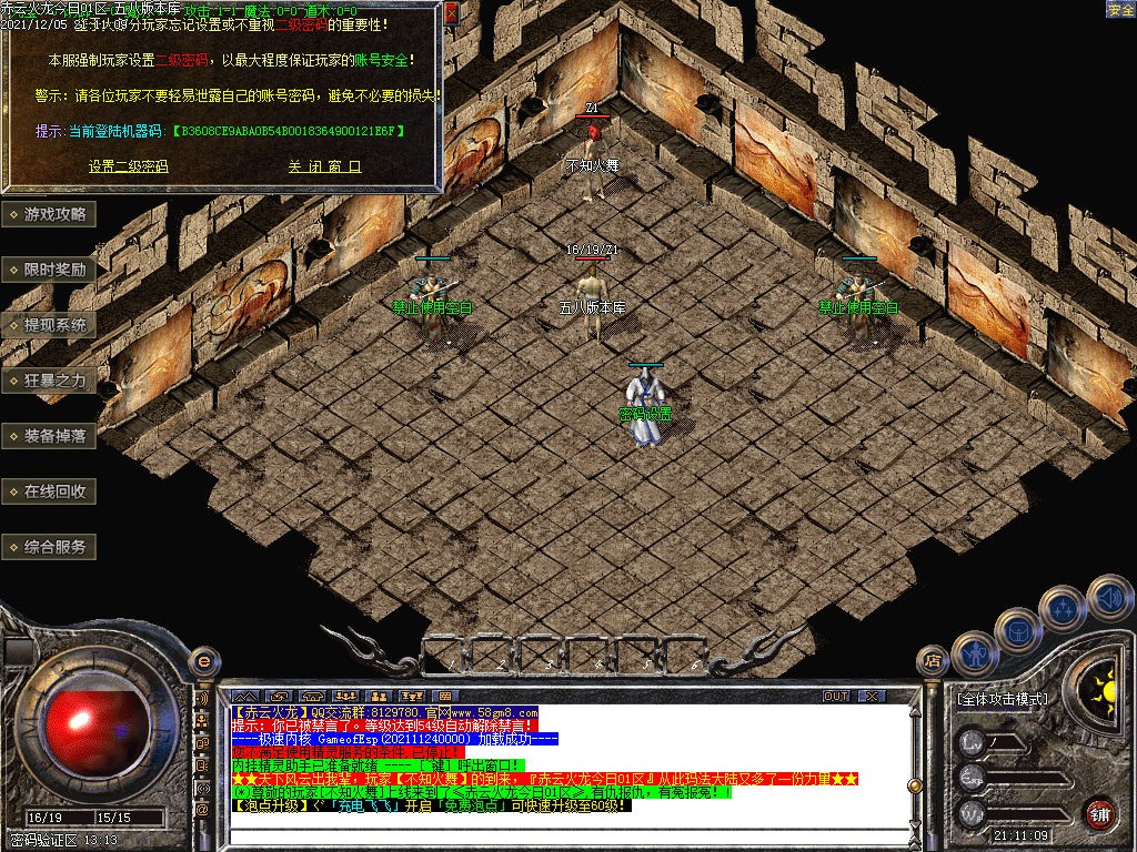 【介绍】:本服活动多 地图多 整区几百只BOOS 任你打 红包充值 各种东西 打不停 装备保值回收
