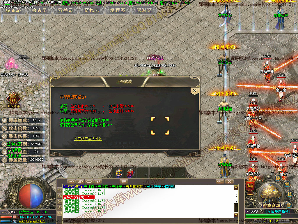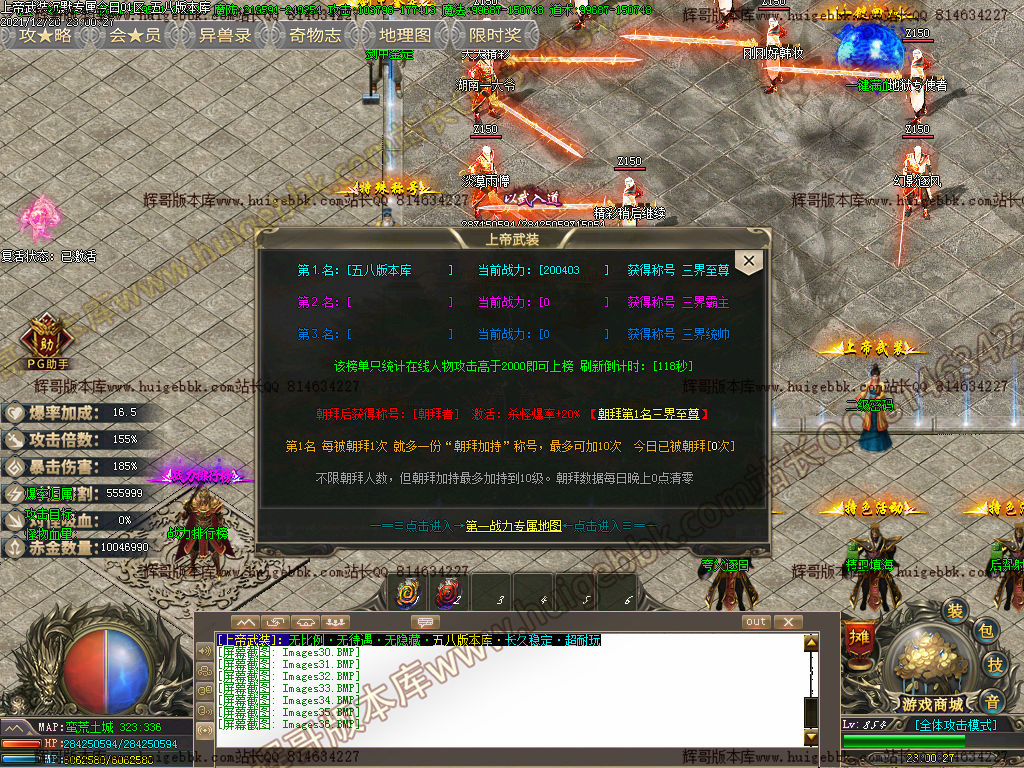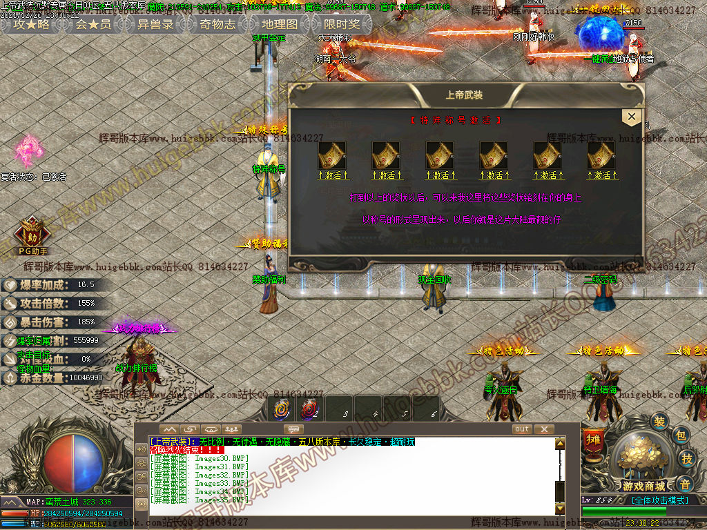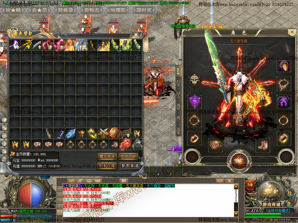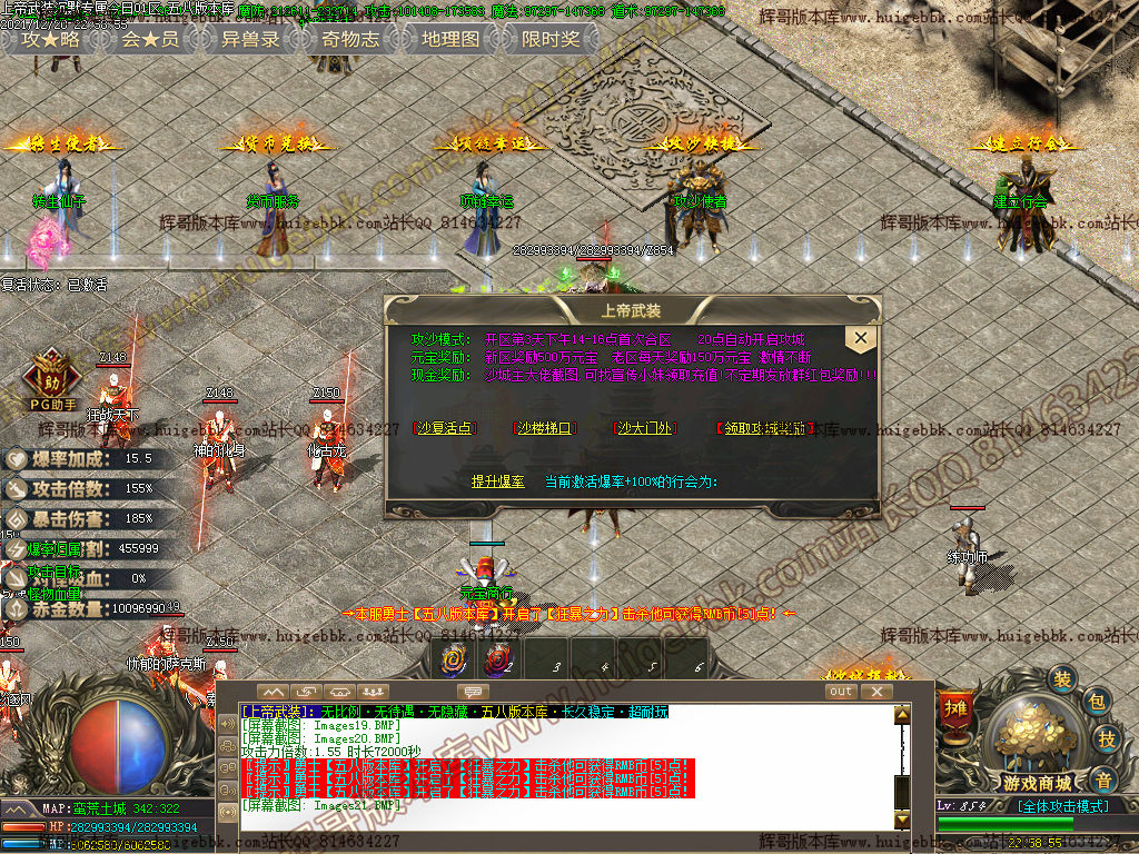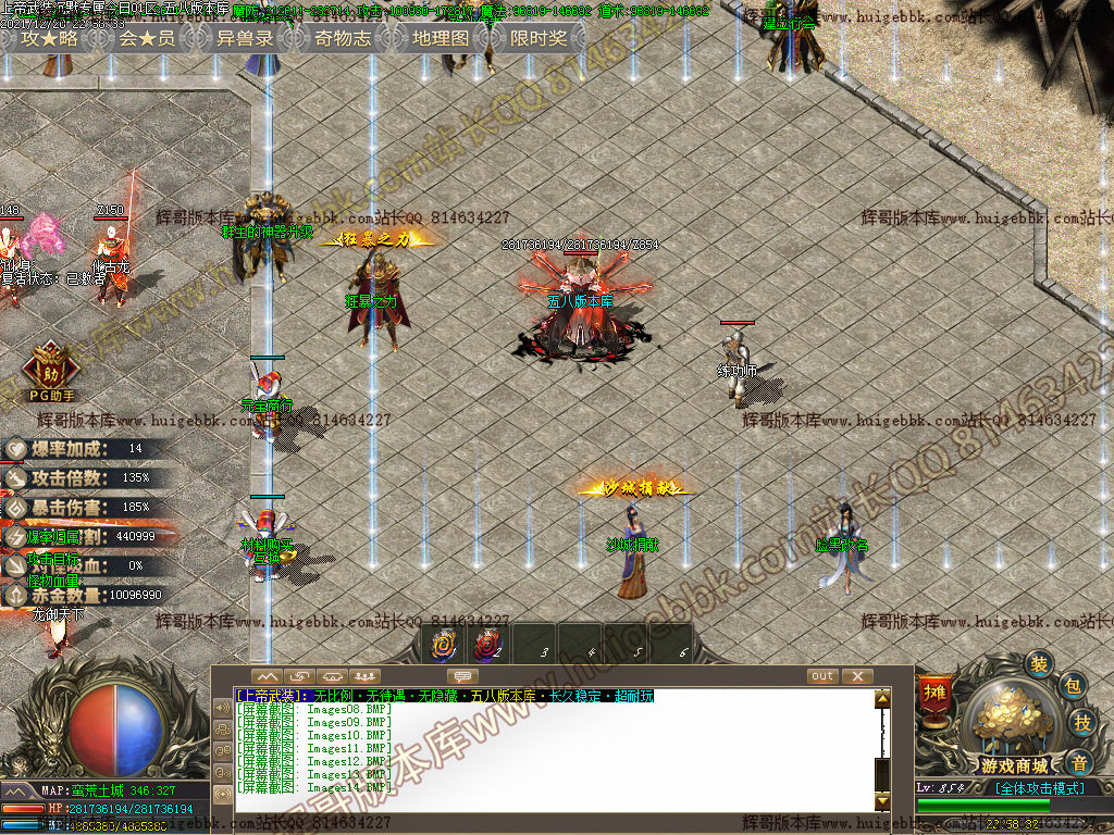 【注】每个地图六小时会刷新1只上古妖王 必爆1万元宝+200赤金 机率出全服所有专属【必抢】