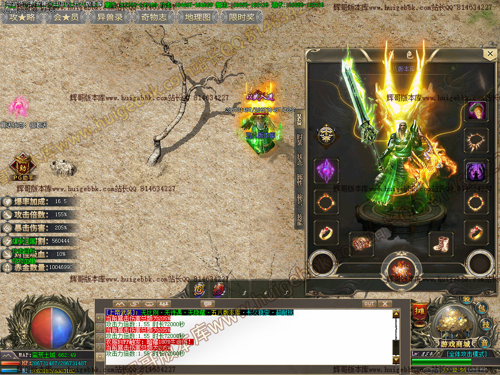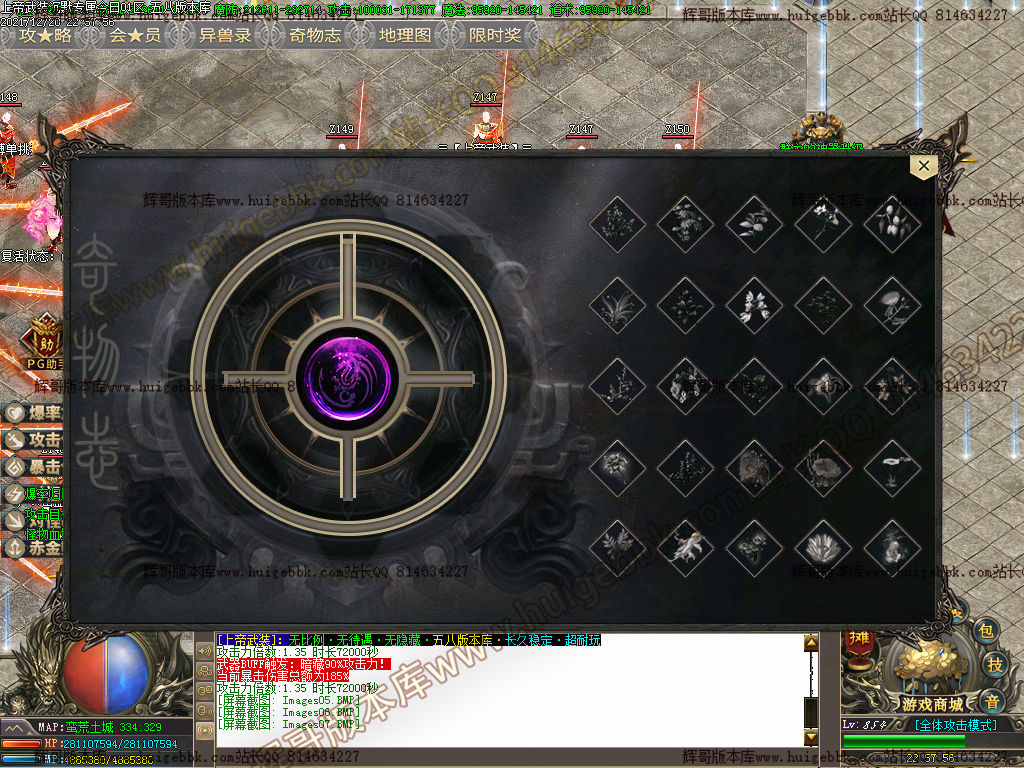 【注】每个地图六小时会刷新1只上古妖王 必爆1万元宝+200赤金 机率出全