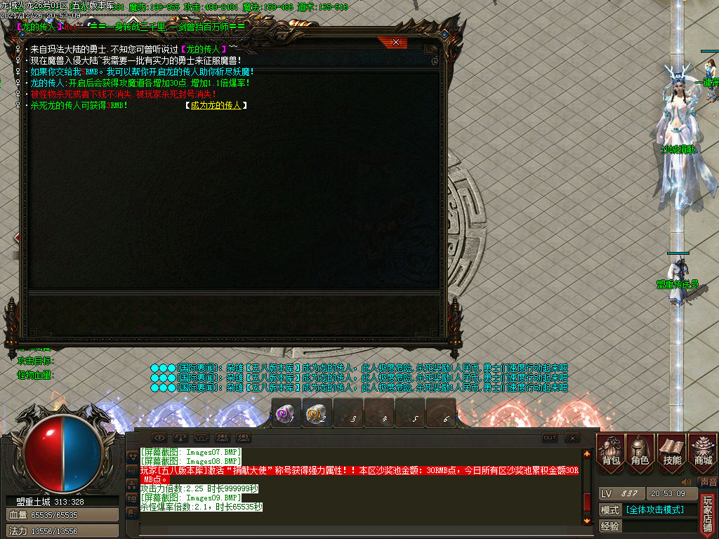 白嫖号 上线领取Q群礼包 就可以下图打怪了 主打6W血的怪物追梦
