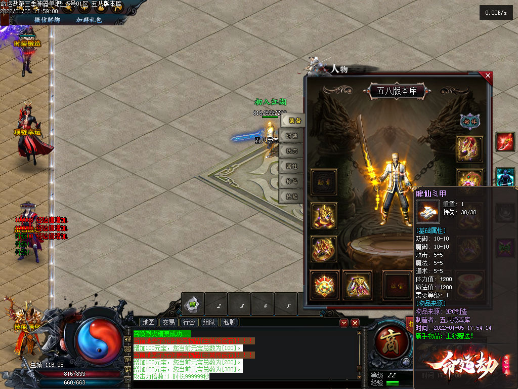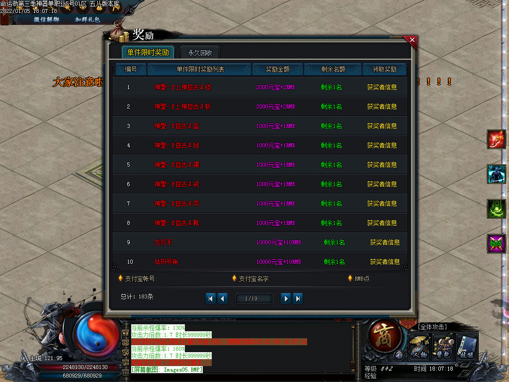 爆率提示: 一区1.1倍 二区1.3倍 三区1.7倍 四区2.0倍 需要换区的可以在游戏内npc自助免费转区。