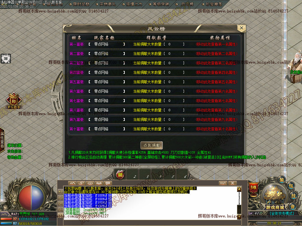 本服为感谢每位玩家的支持,官方推出福利宣传活动(10万大米) 详情进游戏内土城查看 NPC坐标:321 313