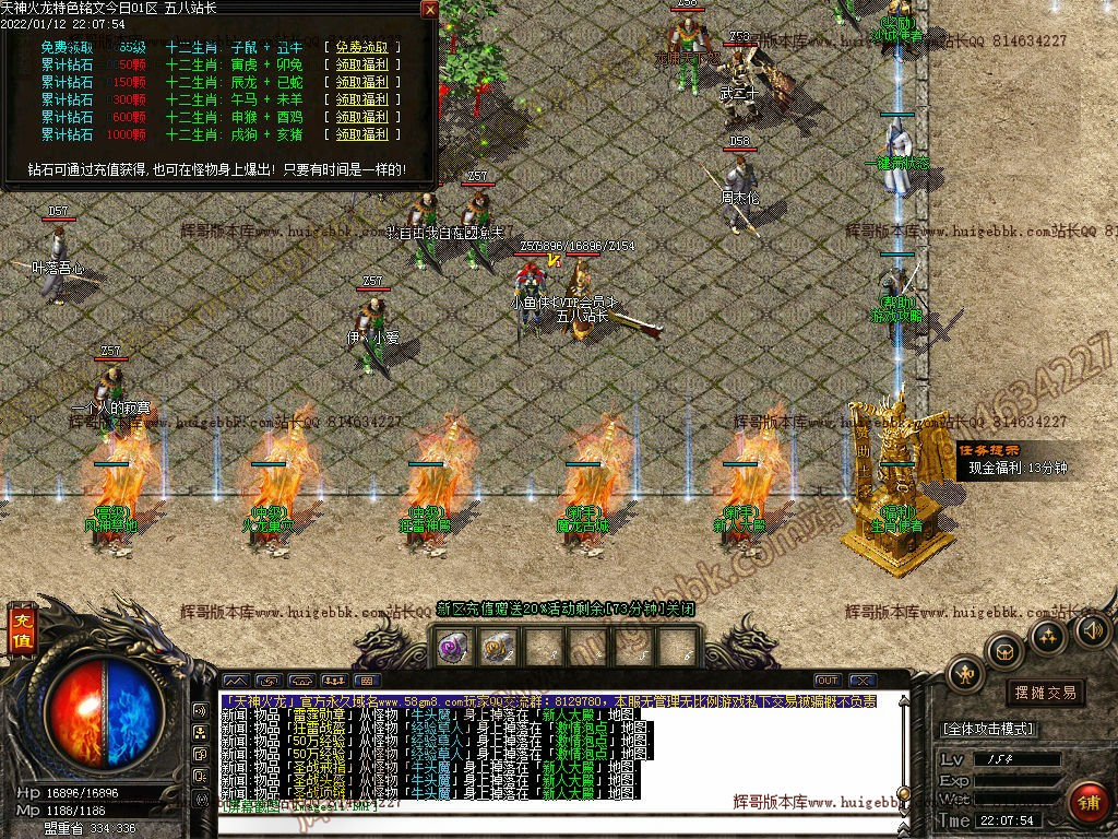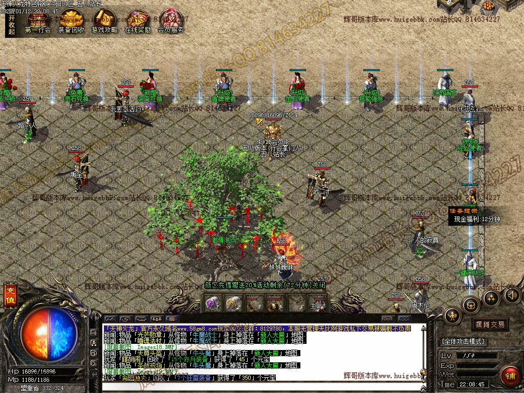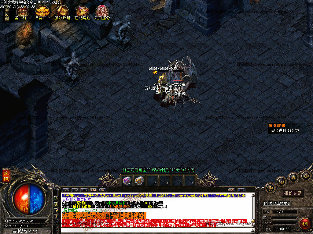 打装备:直接进入会员地图1,打小怪快速掉落战神,狂雷,火龙等起步装备。