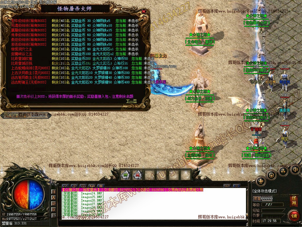 5.多多积攒众神陨铁材料,在怪物屠杀大师处可兑换boss封印石,有几率出高级剑甲!
