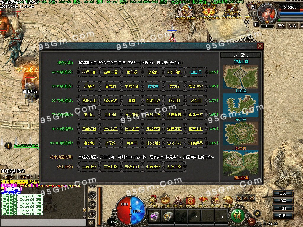 开荒建议:如果不做新手任务,推荐10级之前银杏村打怪,20-30级比奇矿洞、蜈蚣洞,40级香石古墓。(这些地图在比奇安全区可直接传送)