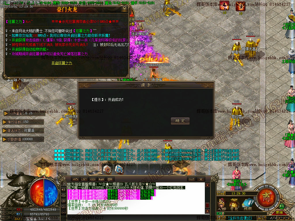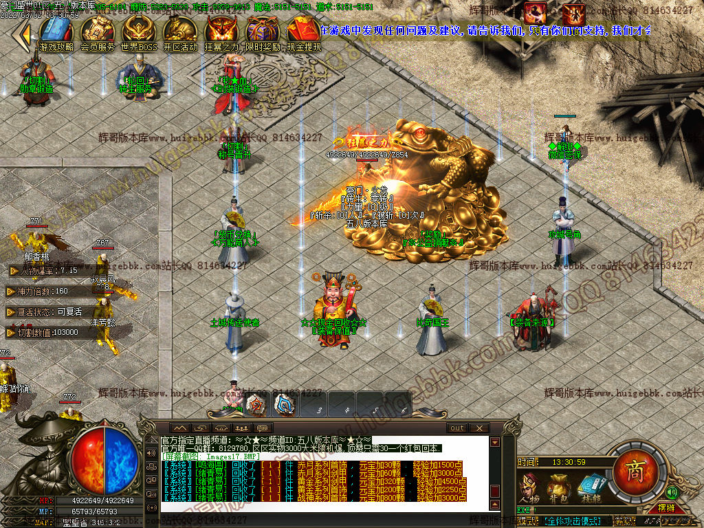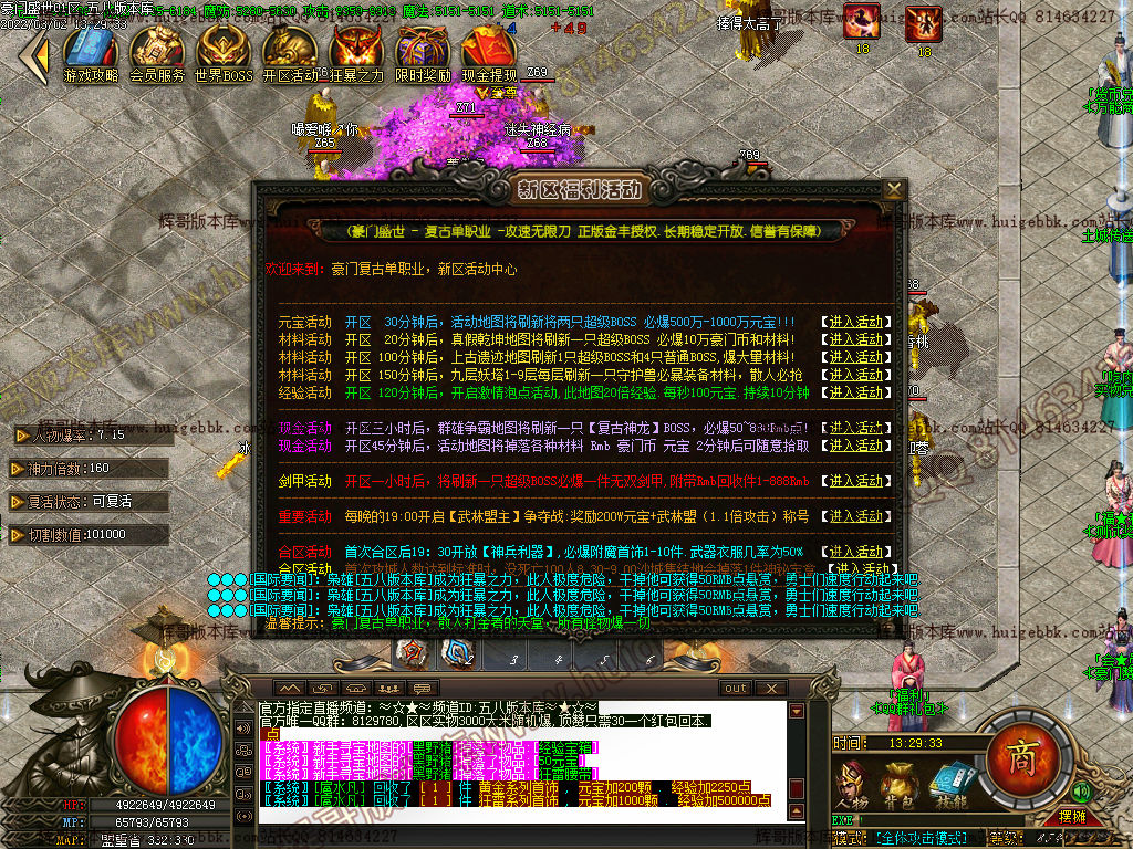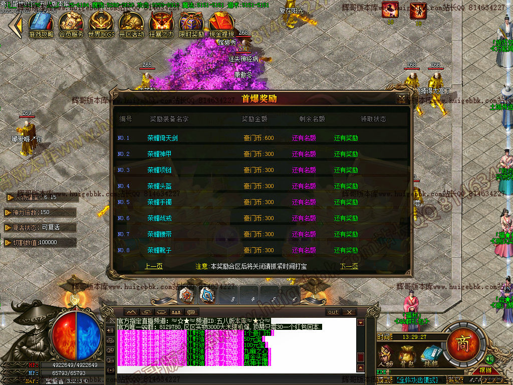 测试区:打无限打粉色怪物回收元宝正式开区可以领取起步阶段快。