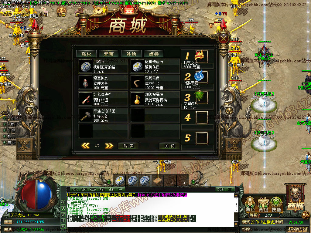 本服元宝非常好打,只要你有时间几小时就能玩满全服,为了方便玩家,【所有材料都可使用元宝在游戏商城中购买】