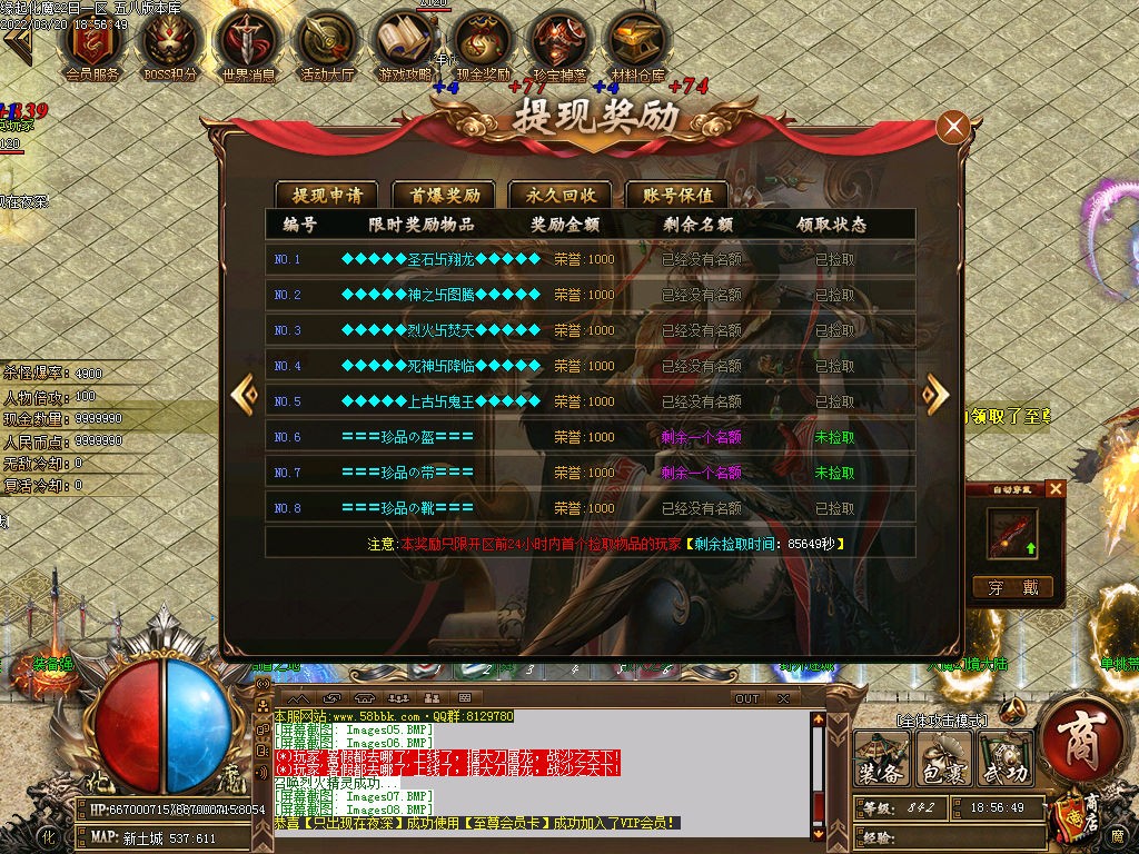 满盾(28盾):为本服终极地图之一,玩家必争之地,全部上古以上怪物,怪物满屏,BOSS多,爆率高,高级装备和专属装备爆率10倍;