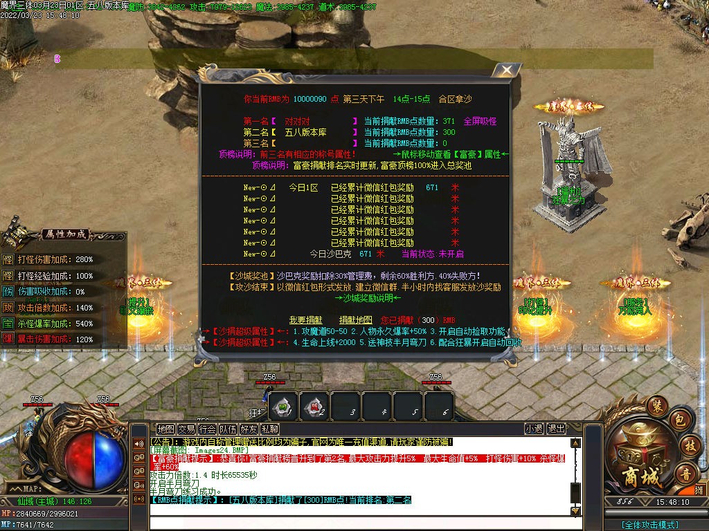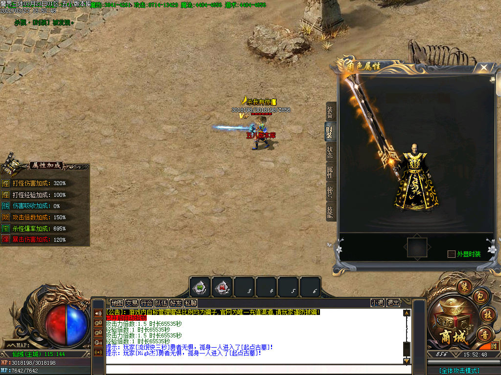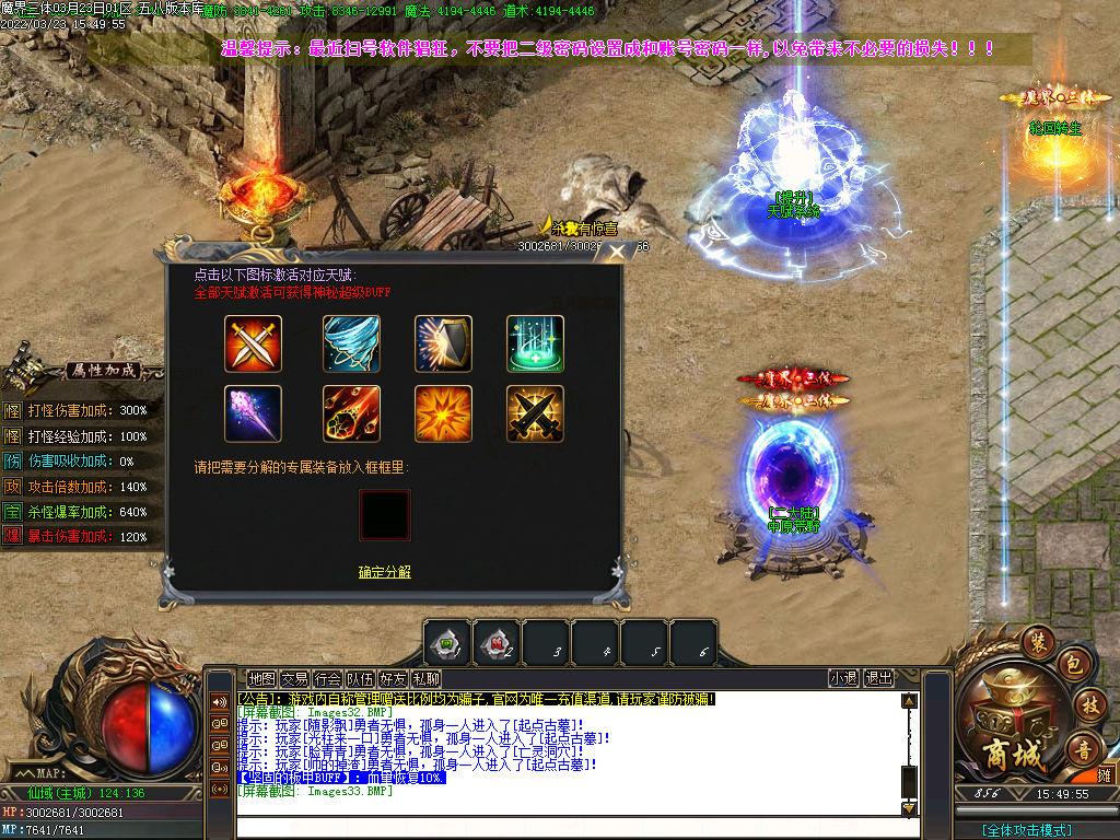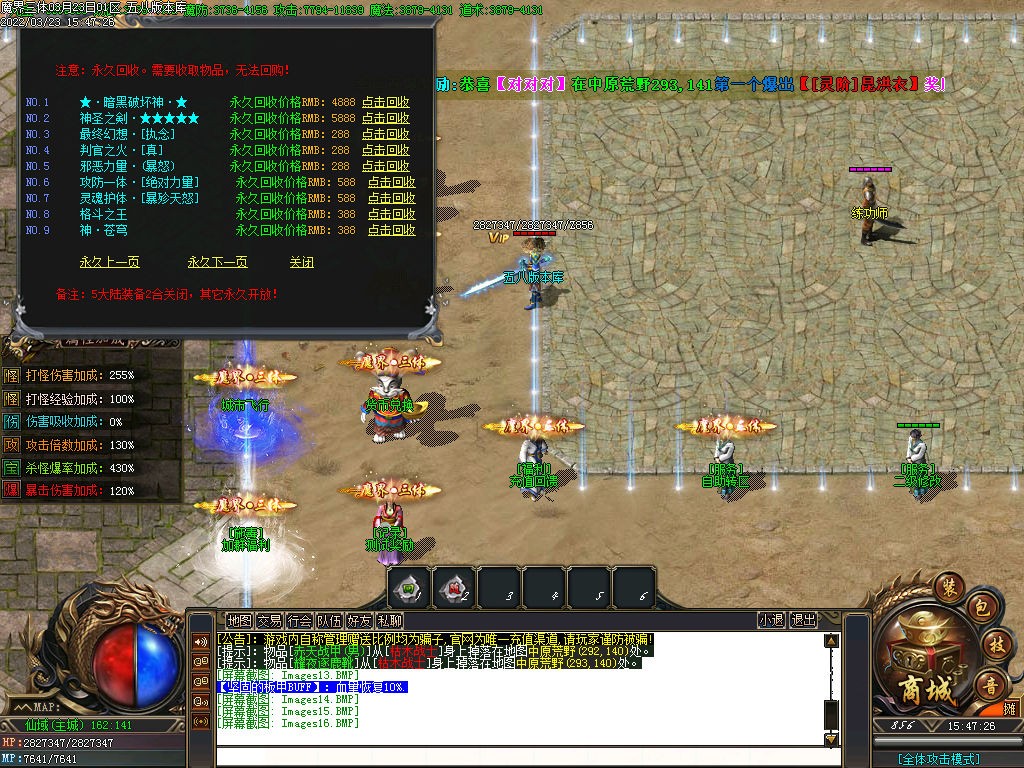 ◆[版本说明] :中原荒野-封魔之城比奇之城-白日门-仙域世界-轮回之路