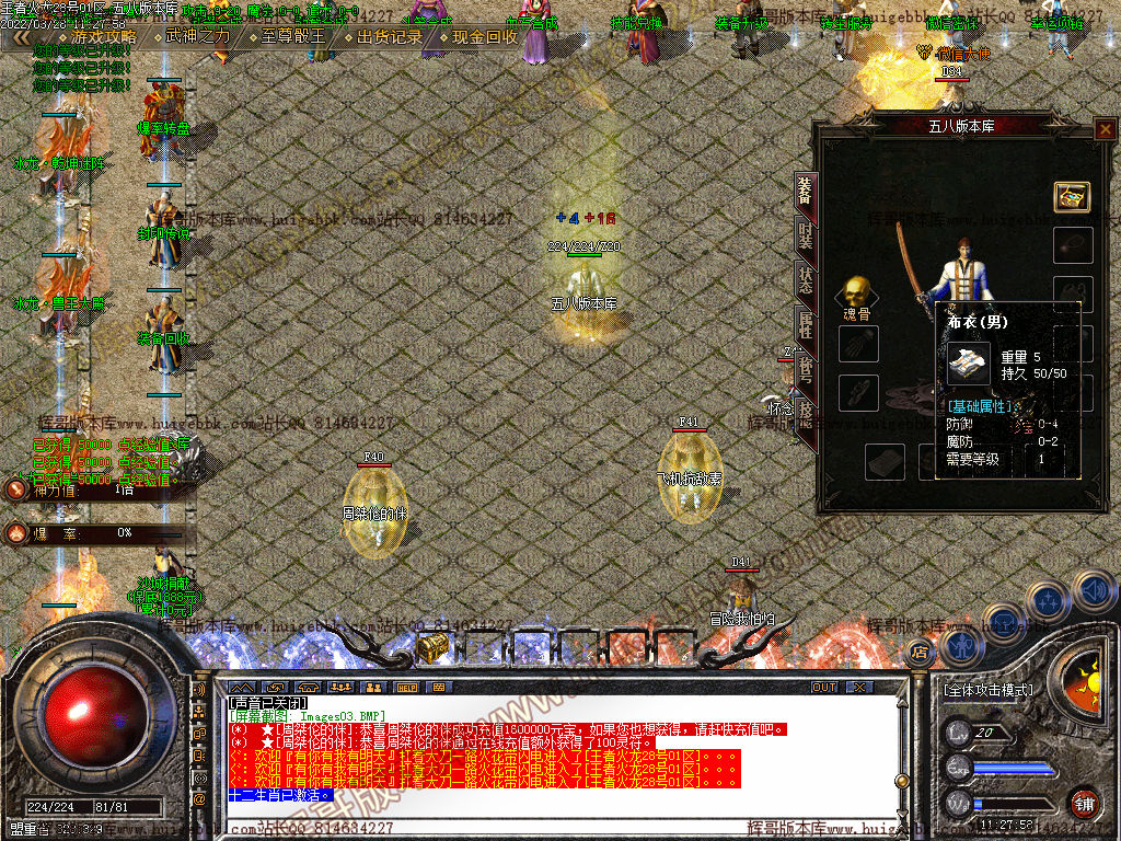 称号升级满1100W元宝终极带打人红毒红名属性超级牛逼!!