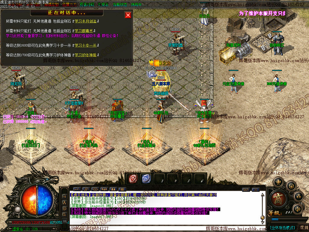 本服开区后第二天下午四点合区,第三天拿沙!奖励大里金刚石元宝,玩家可以放心发展。