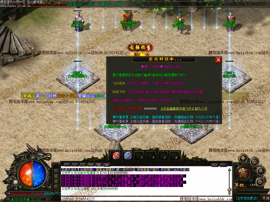 1级召唤神圣龙之王2只,60O级召唤神圣骷髅王2只,700级召唤神圣红虎王2只,800级召唤神圣大米加只