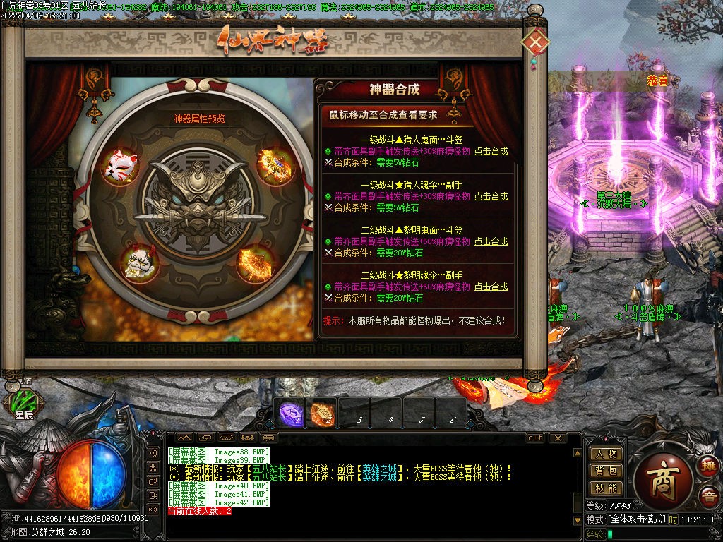 <本服合成时装需要:750w钻石(米素属性极强“三大陆和四大路”时装增加额外装备爆率)<>