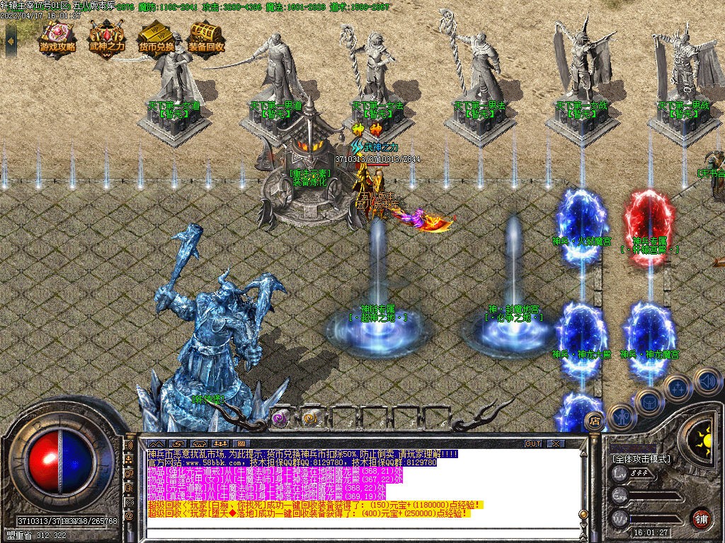 火龙套,神兵套,神兵[狂],神兵[轩辕],主宰大帝,星河极寒,各地图均有爆出,爆不爆谁知道 一切看脸 一切看运气 !!!