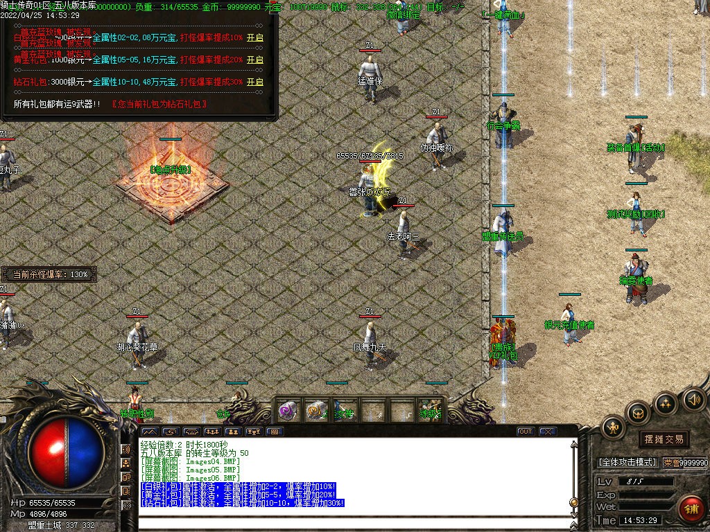 【公告】:为提高人物属性方便玩家打宝,特设置各种NPC,龙的传人,转生服务,爵位捐献,天下第一,武林盟主等。
