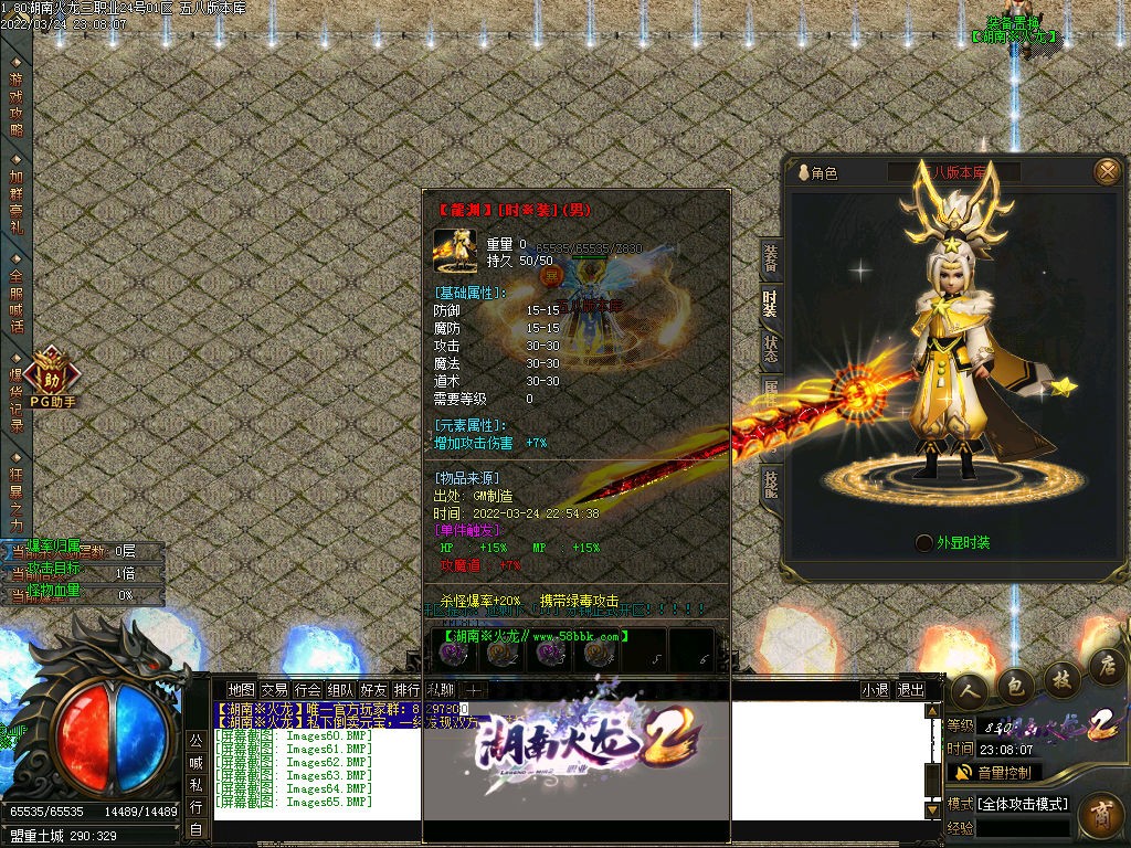 装备层次:圣战-雷霆-强化-战神-火 龙冰龙完美热血-湘军[所以装备全爆] !