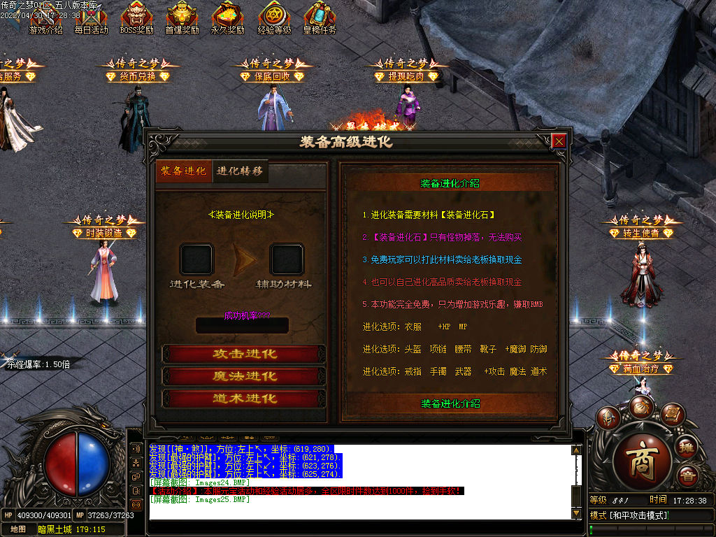 【职业玩法】:本服三职业设置平衡,玩什么职业就看个人手法与喜好,道士在50级召唤神兽.66级召唤圣兽.
