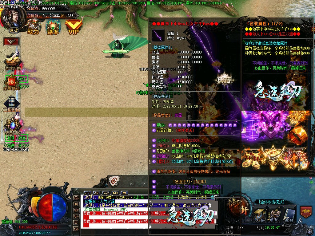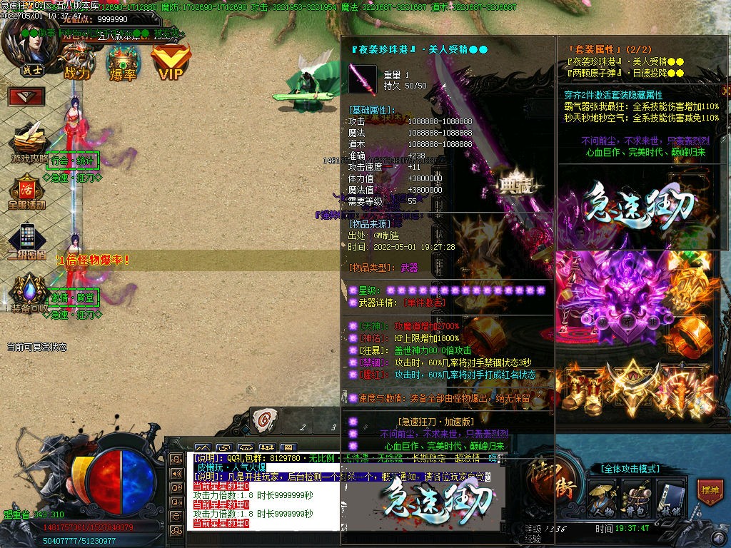 【 急速狂刀】本服等级满级1300级 转生35转满 土城泡点至500级