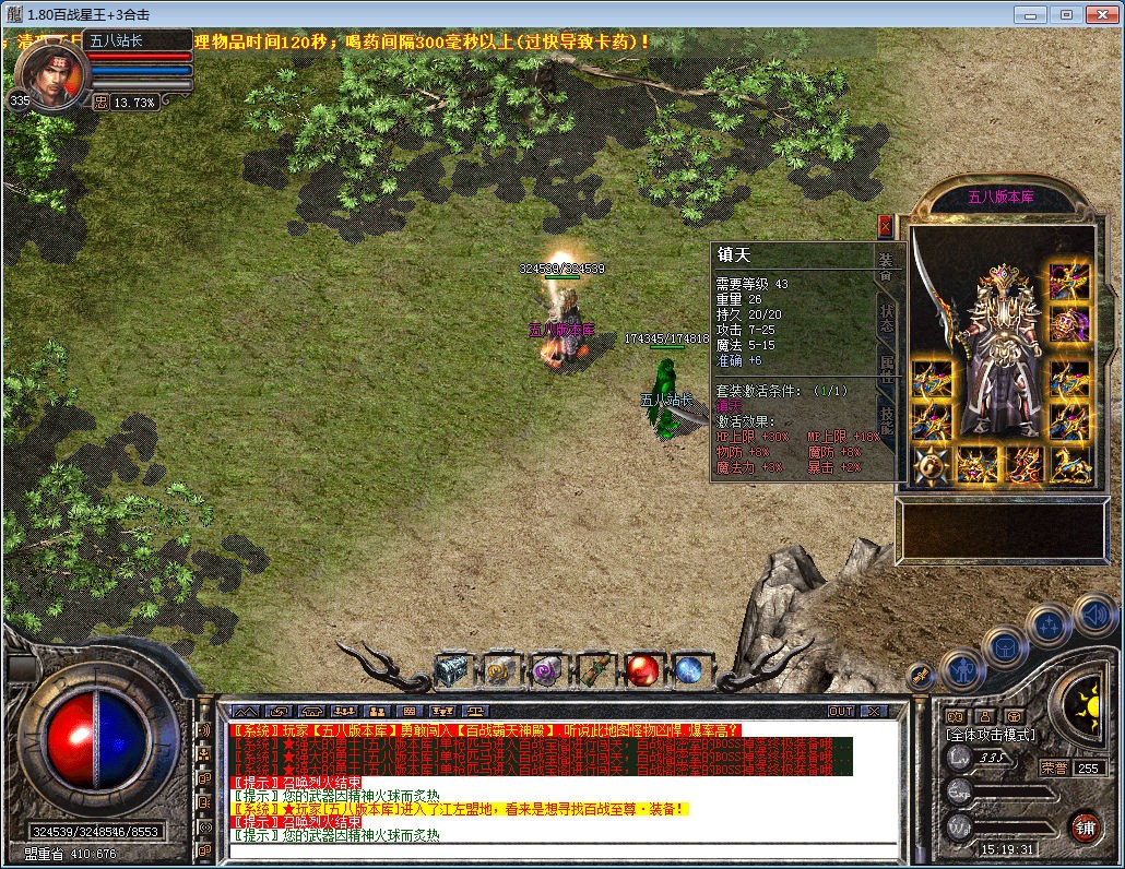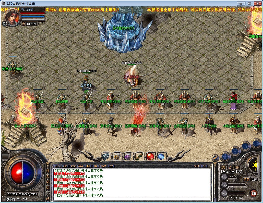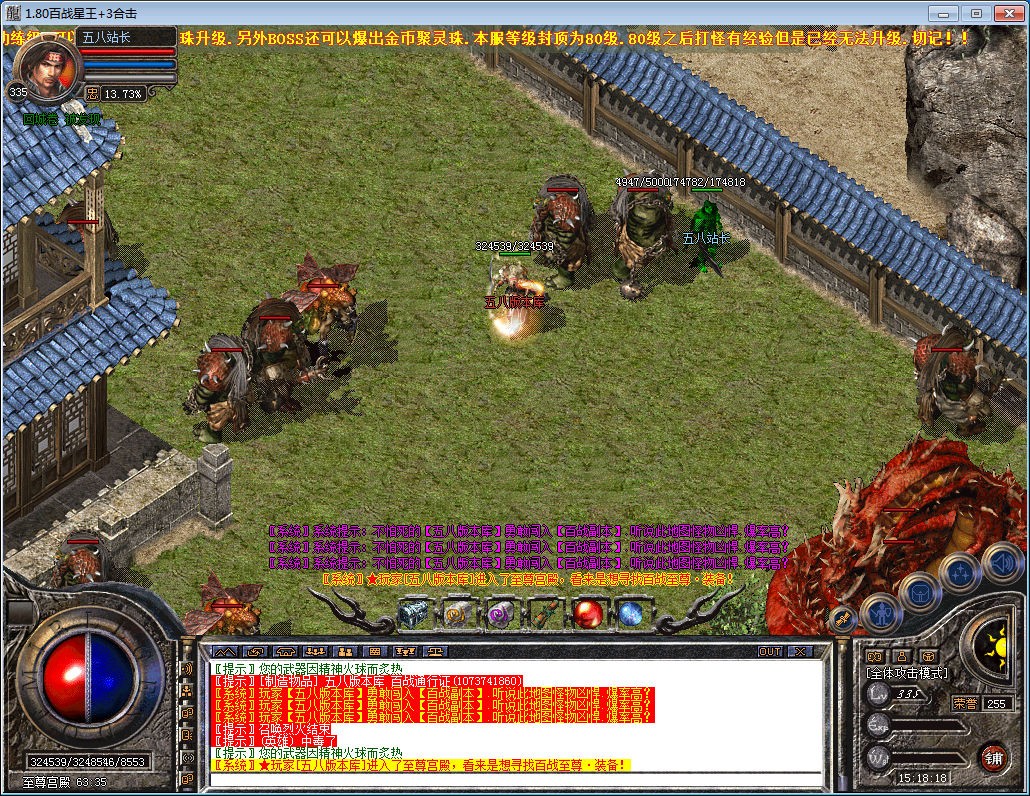 版本介绍:全新打宝,加活动型合击,各种惊喜活动,次终极装备直接换取充值,BOSS爆米卷,跟充值一样,