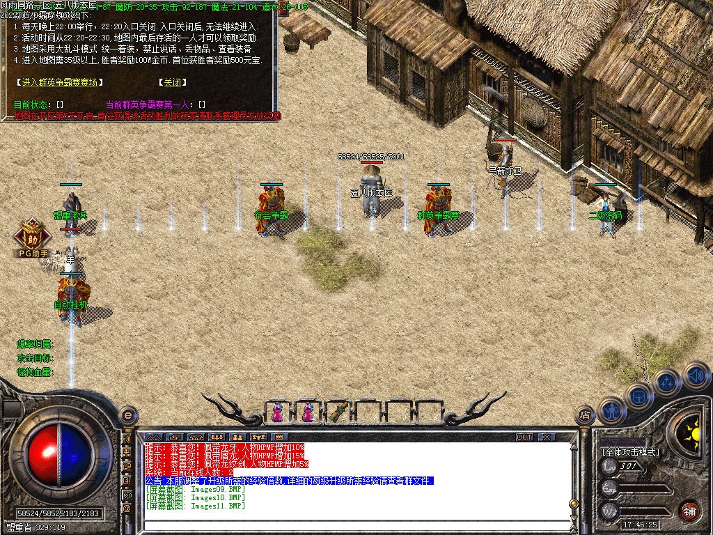 19:本服每晚举行“行会争霸赛”、“群英争霸赛”、“稻草人送宝”活动,奖励内容游戏内了解.