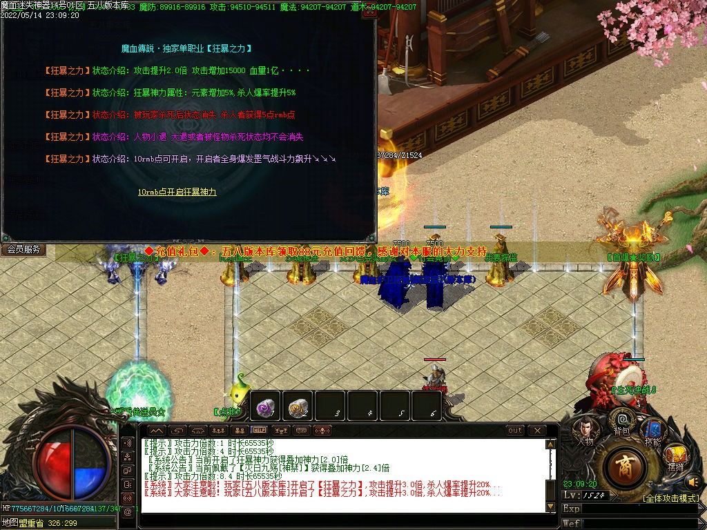 ?上线满回馈+捐献刀刀]冰东这是必须的,回馈和捐献提升自身爆率,开启狂暴之力就可以进图了!