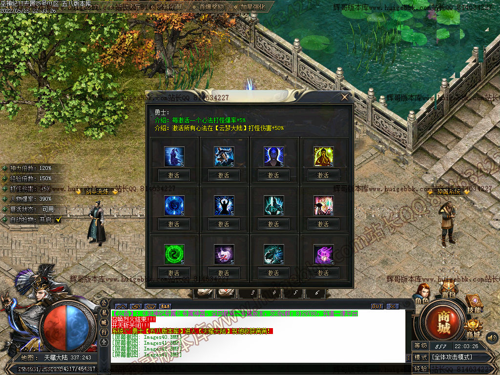3,升级技巧: 游戏里升级全靠自己打怪(400满级),可以商铺购买聚灵珠升级效果翻倍。