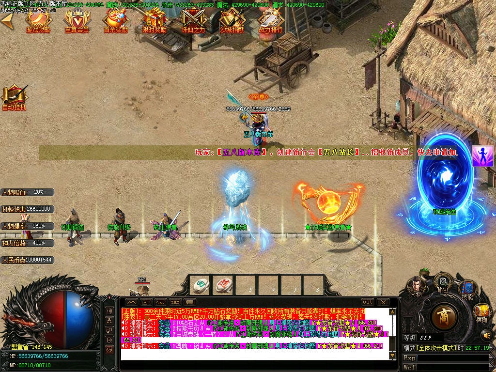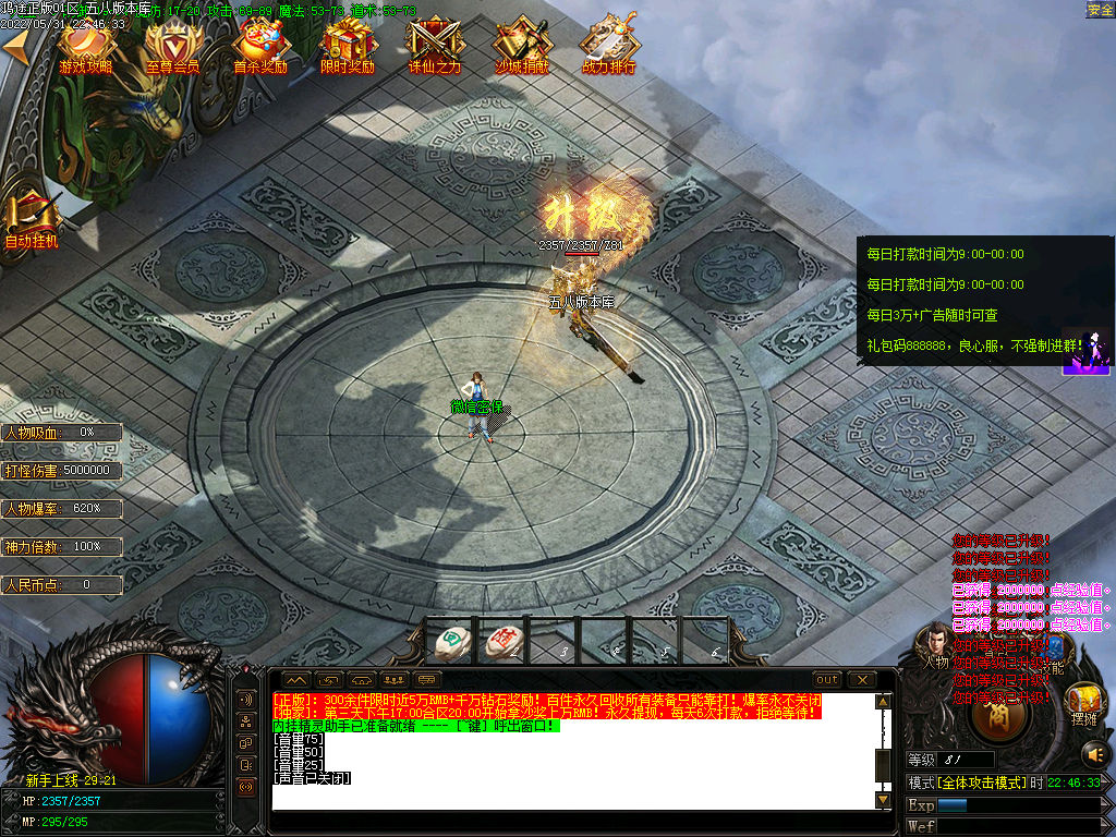 30米米开启沙城捐献 (永久刀刀切割全服怪物100万血+爆率+50%)