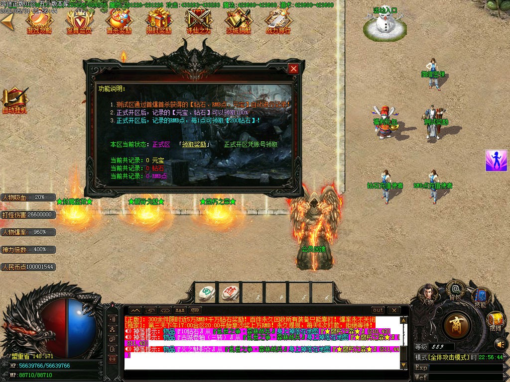 [限时奖励] :单区万米限时,BOSS首 杀奖励,永久回收高,装备保值,小怪爆-切