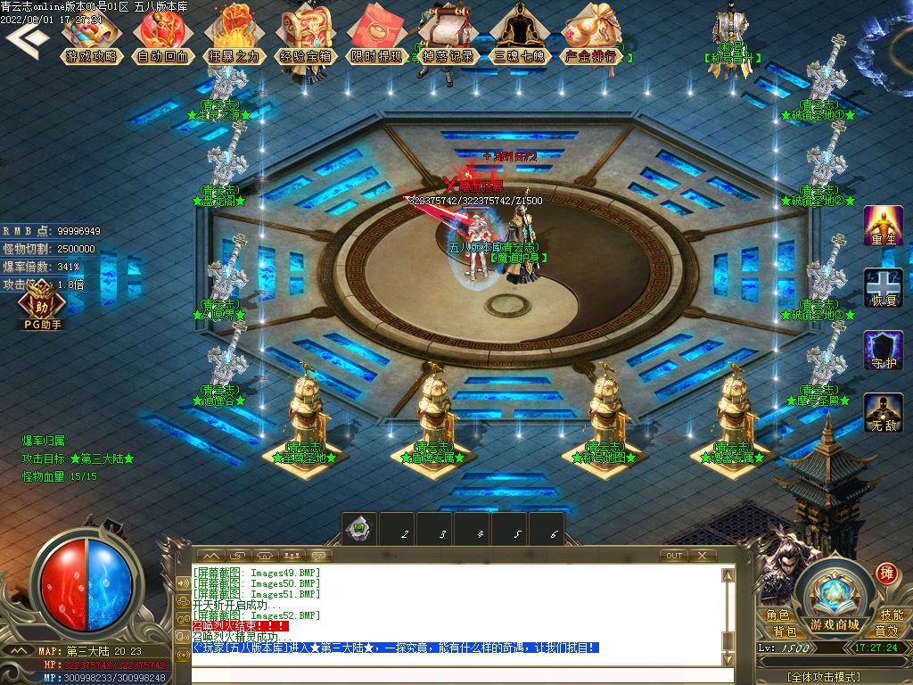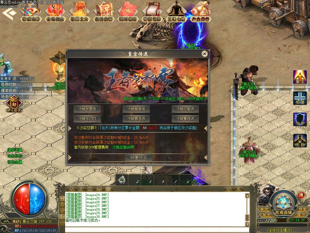 【合区模式】∶第二天下午17:00左右合区,晚上20:00准时开启沙巴克,千人在线、无限激情。