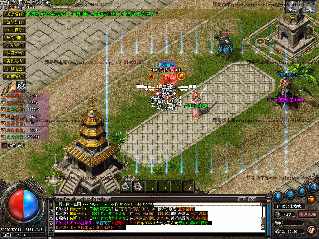 新区第三天攻城,散人有充足的发育时间,所有装备全部爆出