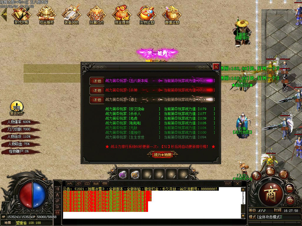 充值比例1米=100金币 打到实物兑换成金币一样可以进行本服所有消费.